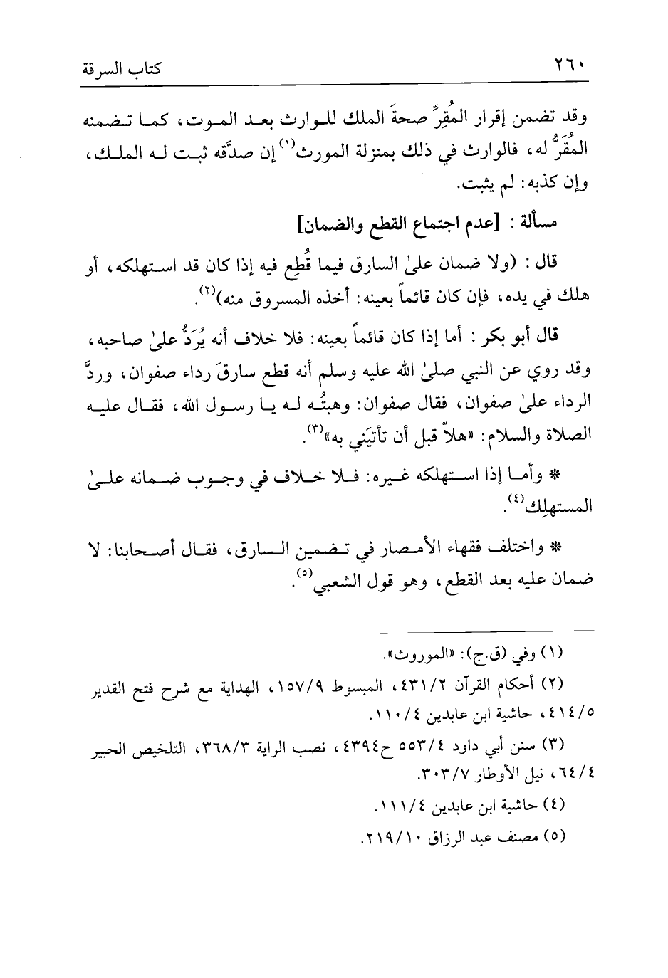 * واختلف فقهاء الأمصار في تضمين السارق، فقال أصحابنا، لا ضمان عليه بعد القطع، وهو قول الشعبي.
