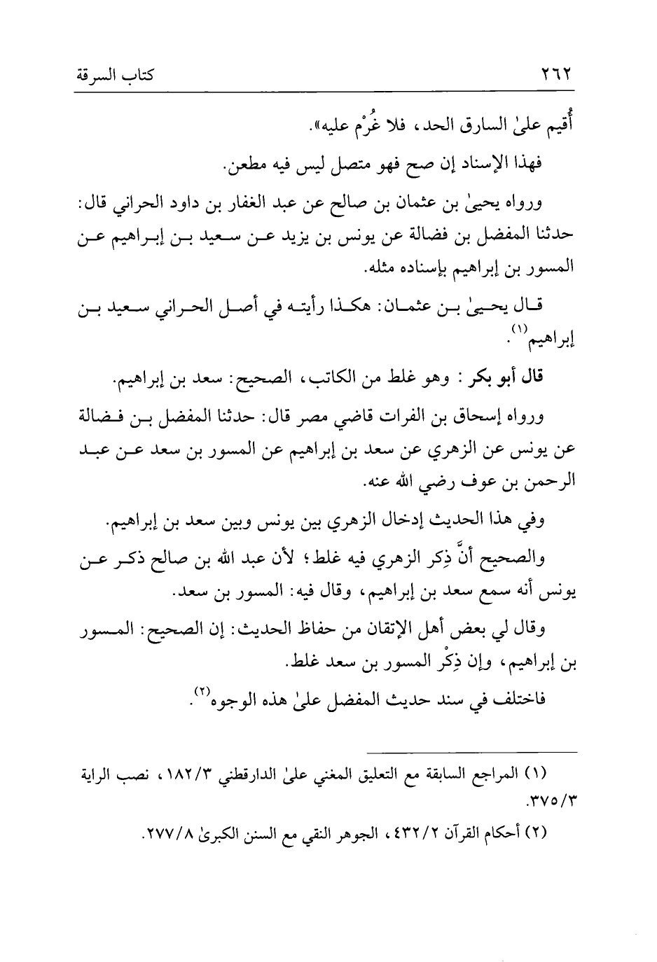 قال يحي بن عثمان: هكذا رأيته في أصل الحراني سعيد بن إبراهيم.