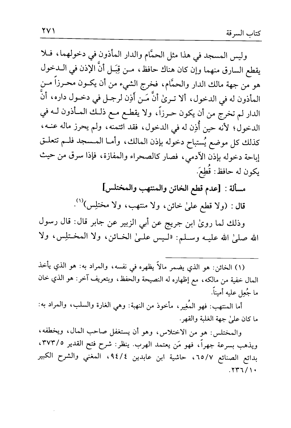 قال: (ولا قطع على خائن، ولا منتهب، ولا مختلس).