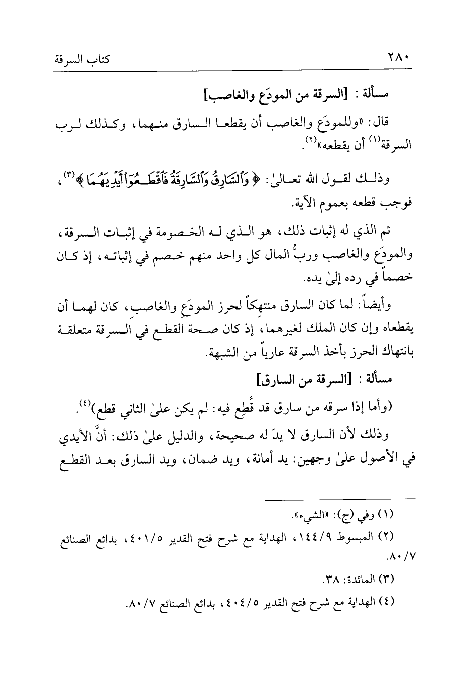 قال: "وللمودع والغاصب أن يقطعا السارق منهما، وكذلك لرب السرقة أن يقطعه".