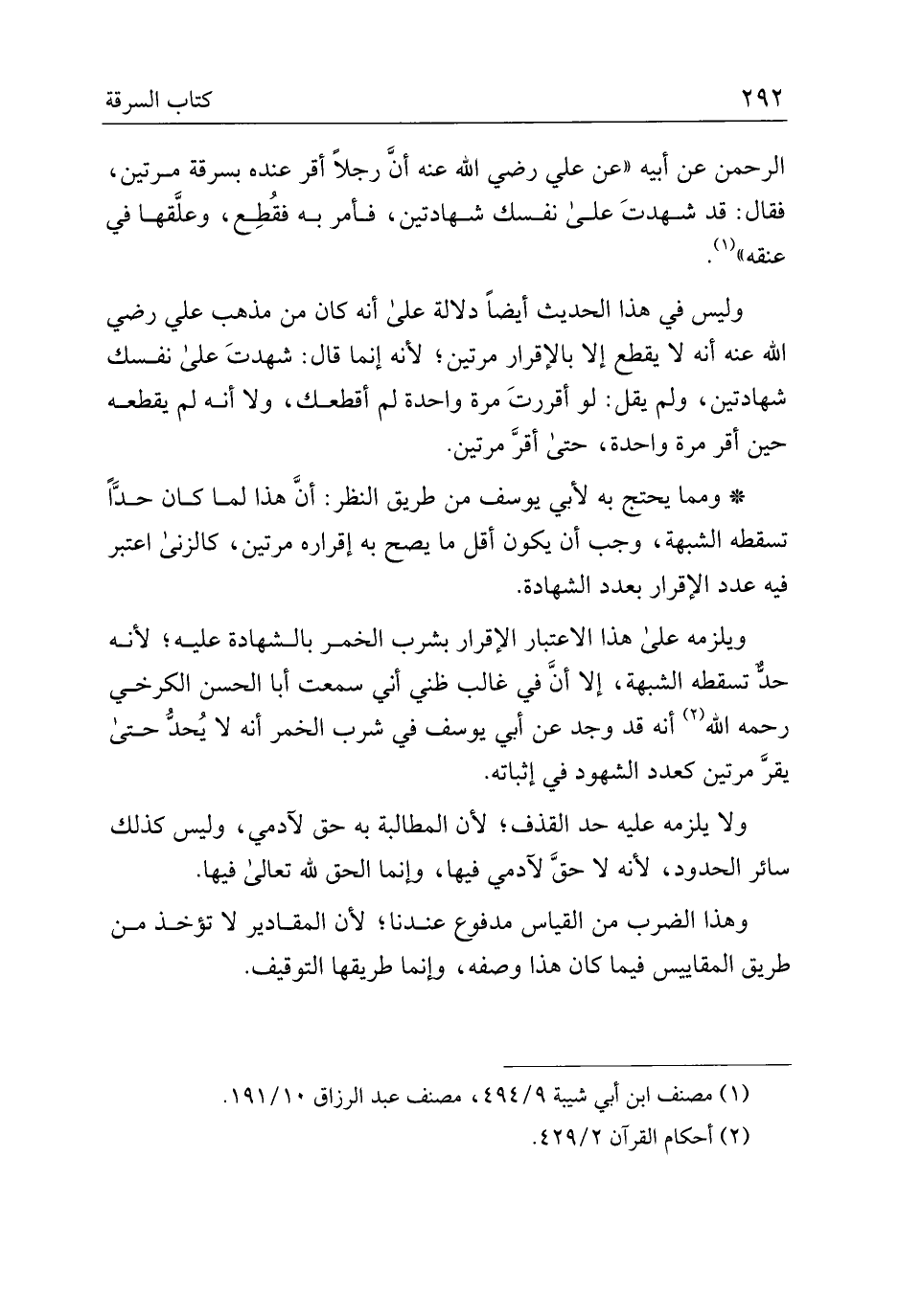 وليس في هذا الحديث أيضًا دلالة على أنه كان من مذهب علي رضي الله عنه أنه لا يقطع إلا بالإقرار مرتين؛ لأنه إنما قال: شهدت على نفسك شهادتين، ولم يقل: لو أقررت مرة واحدة لم أقطعك، ولا أنه لم يقطعه حين أقر مرة واحدة، حتى أقر مرتين.