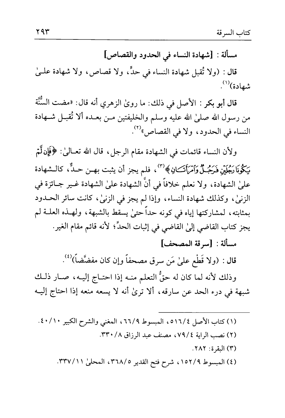 مسألة: [شهادة النساء في الحدود والقصاص]