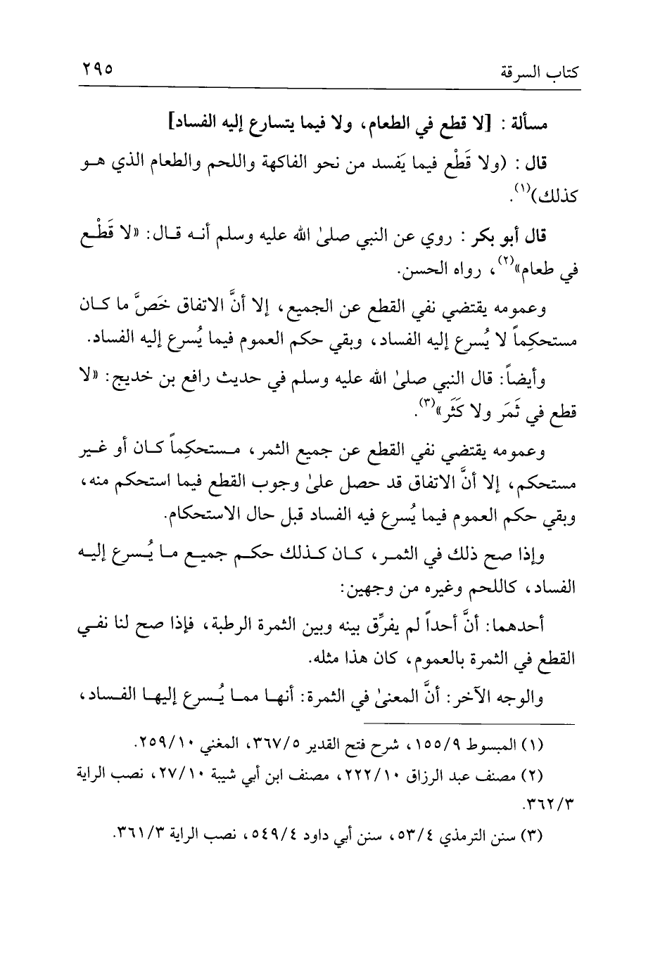 وعمومه يقتضي نفي القطع عن الجميع، إلا أن الاتفاق خص ما كان مستحكمًا لا يسرع إليه الفساد، وبقي حكم العموم فيما يُسرع إليه الفساد.