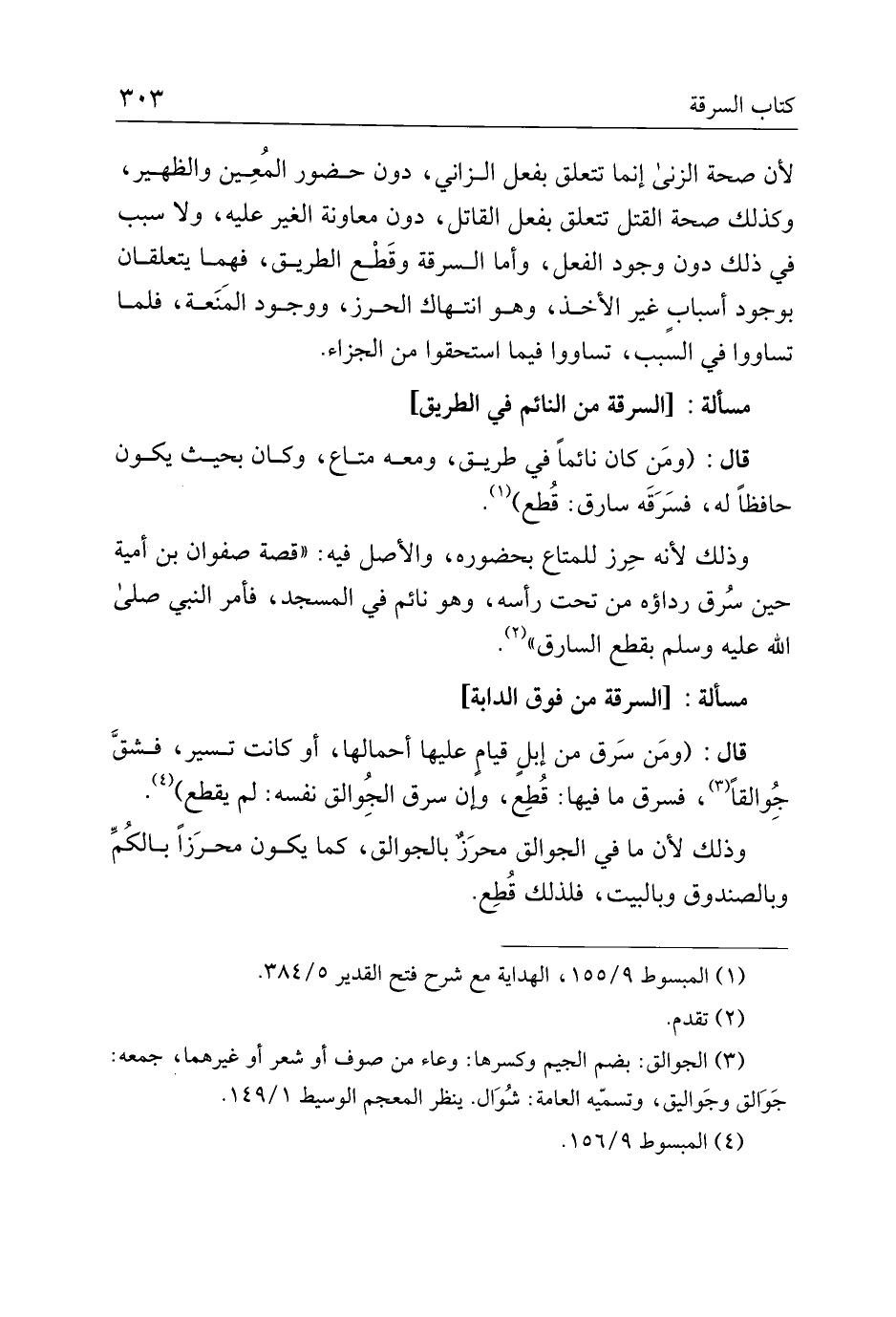 مسألة: [السرقة من النائم في الطريق]