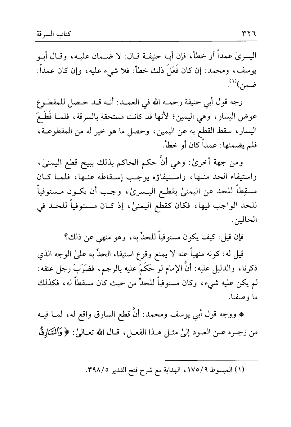 ومن جهة أخرى: وهي أن حكم الحاكم بذلك يبيح قطع اليمنى، واستيفاء الحد منها، واستيفاؤه يوجب إسقاطه عنها، فلما كان مسقطًا للحد عن اليمنى بقطع اليسرى، وجب أن يكون مستوفيًا للحد الواجب فيها، فكان كقطع اليمنى، إذ كان مستوفيًا للحد في الحالين.