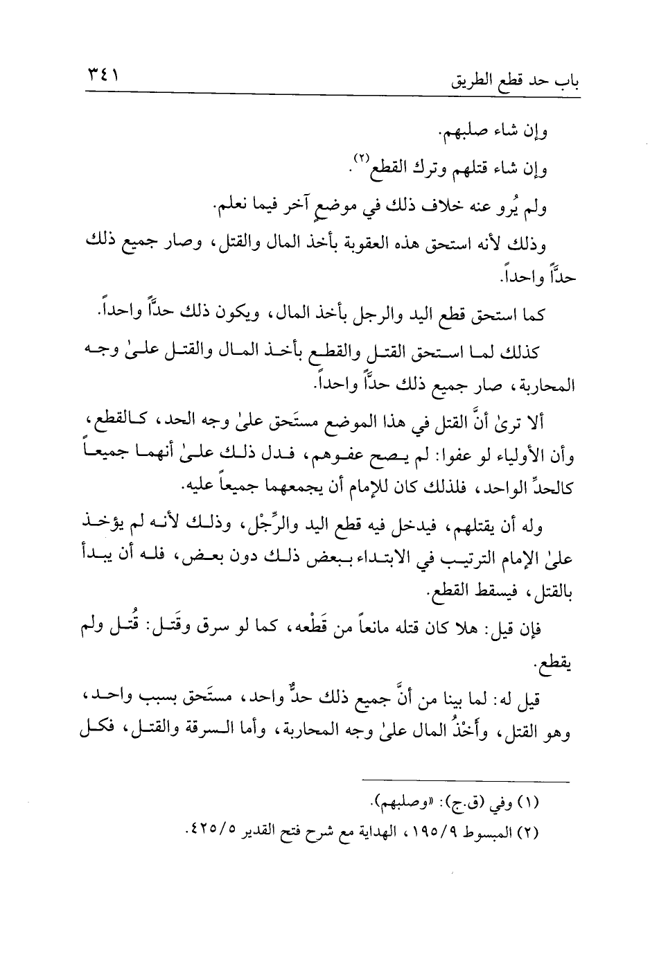 كذلك لما استحق القتل والقطع بأخذ المال والقتل على وجه المحاربة، صار جميع ذلك حدًا واحدًا.