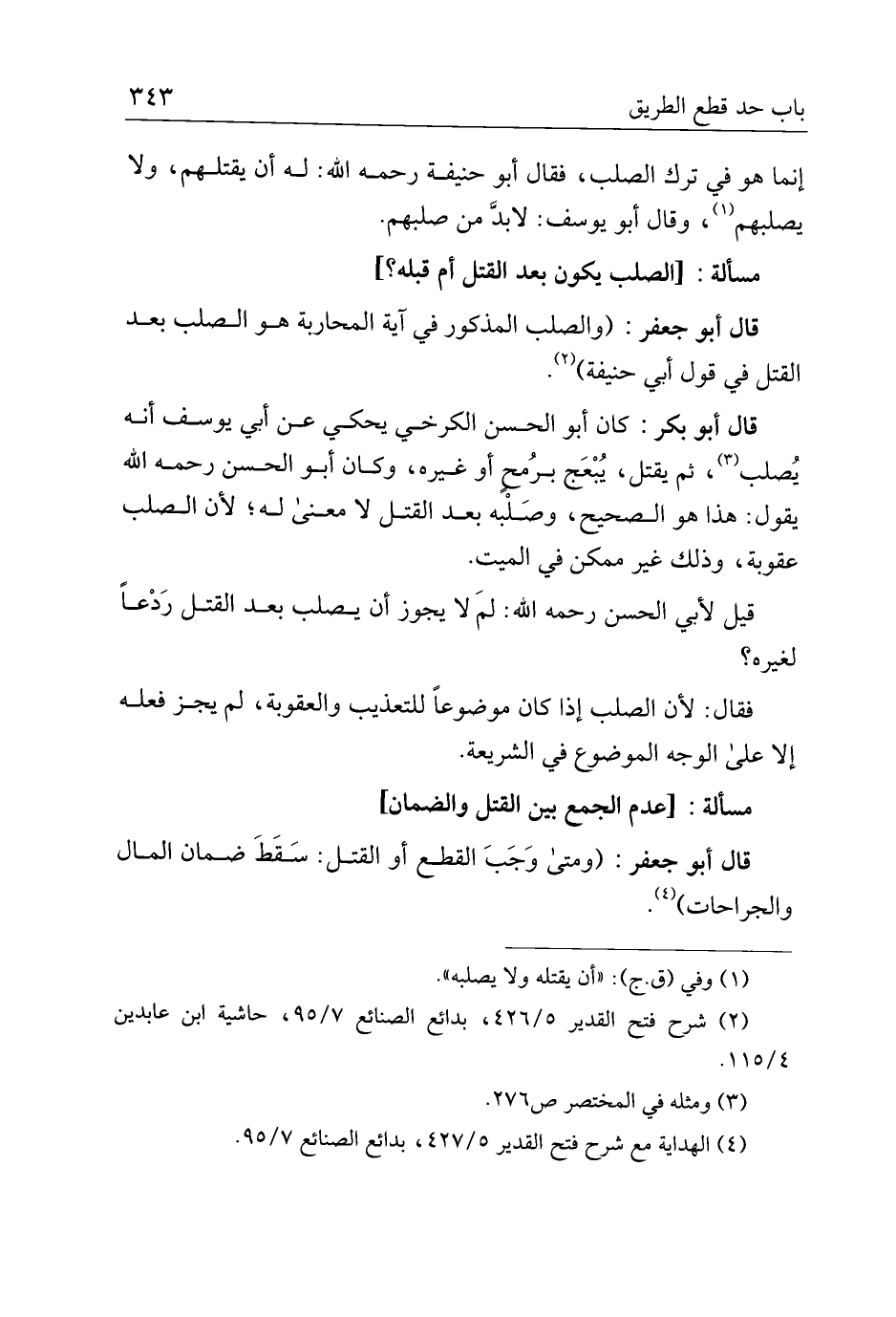 إنما هو في ترك الصلب، فقال أبو حنيفة رحمه الله: له أن يقتلهم، ولا يصلبهم، وقال أبو يوسف: لابد من صلبهم.