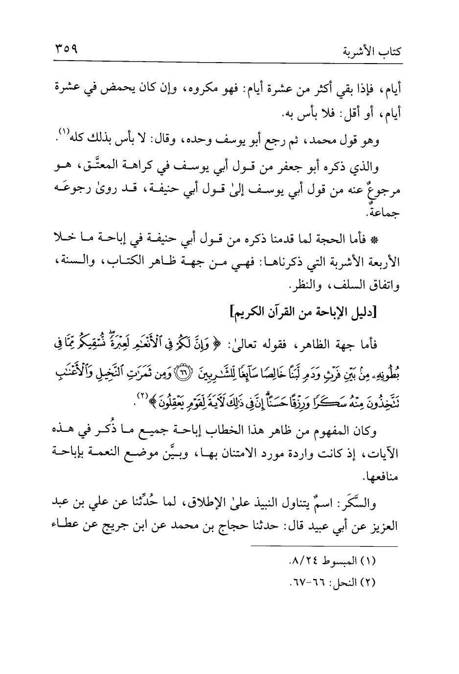 * فأما الحجة لما قدمنا ذكره من قول أبي حنيفة في إباحة ما خلا الأربعة الأشربة التي ذكرناها: فهي من جهة ظاهر الكتاب، والسنة، واتفاق السلف، والنظر.
