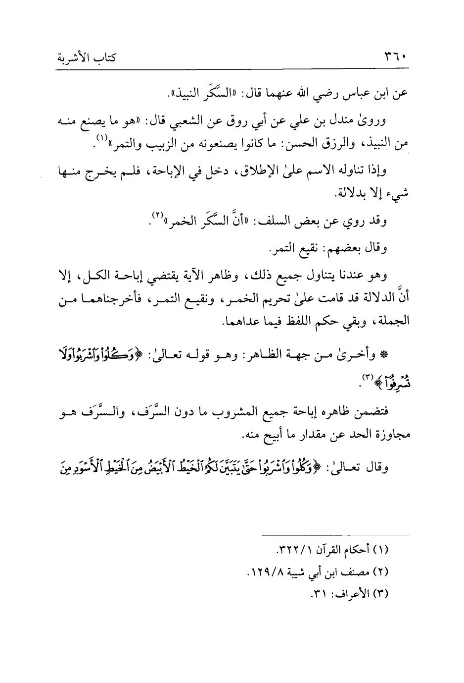 فتضمن ظاهره إباحة جميع المشروب ما دون السرف، والسرف هو مجاوزة الحد عن مقدار ما أبيح منه.