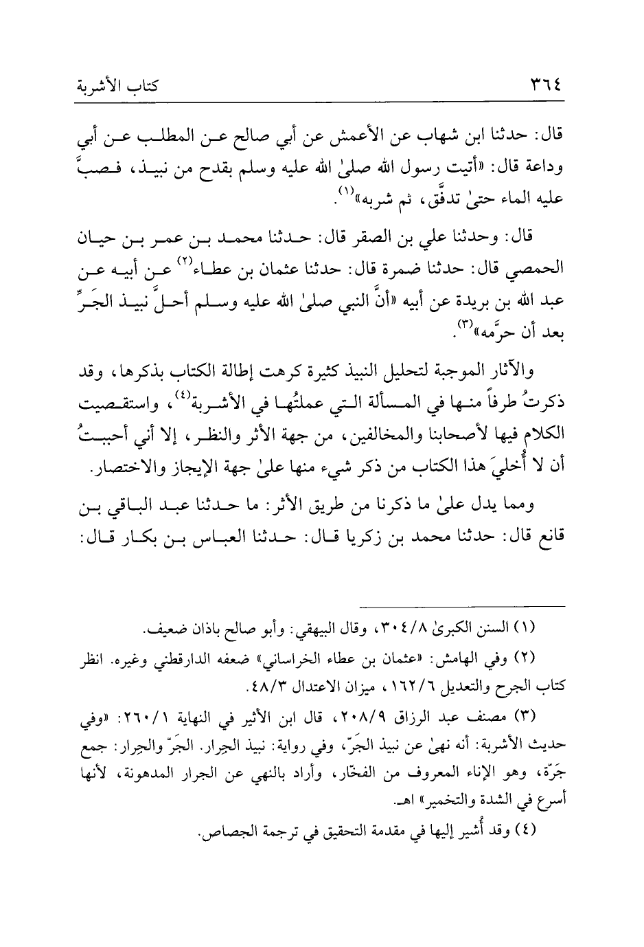 قال: وحدثنا علي بن الصقر قال: حدثنا محمد بن عمر بن حيان الحمصي قال: حدثنا ضمرة قال: حدثنا عثمان بن عطاء عن أبيه عن عبد اله بن بريدة عن أبيه "أن النبي صلى الله عليه وسلم أحل نبيذ الجر بعد أن حرمه".