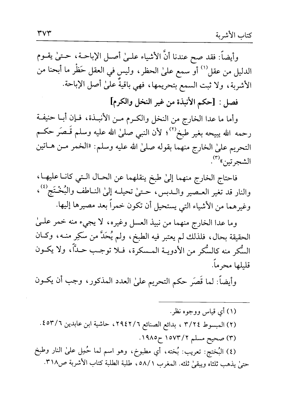 وأما ما عدا الخارج من النخل والكرم من الأنبذة، فإن أبا حنيفة رحمه الله يبيحه بغير طبخ؛ لأن النبي صلى الله عليه وسلم قصر حكم التحريم على الخارج منهما بقوله صلى الله عليه وسلم: "الخمر من هاتين الشجرتين".
