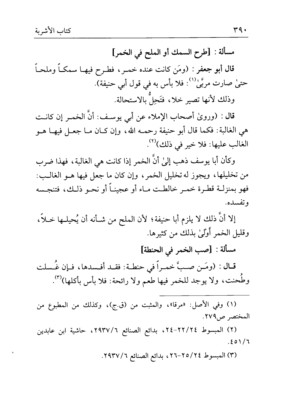 مسألة: [طرح السمك أو الملح في الخمر]