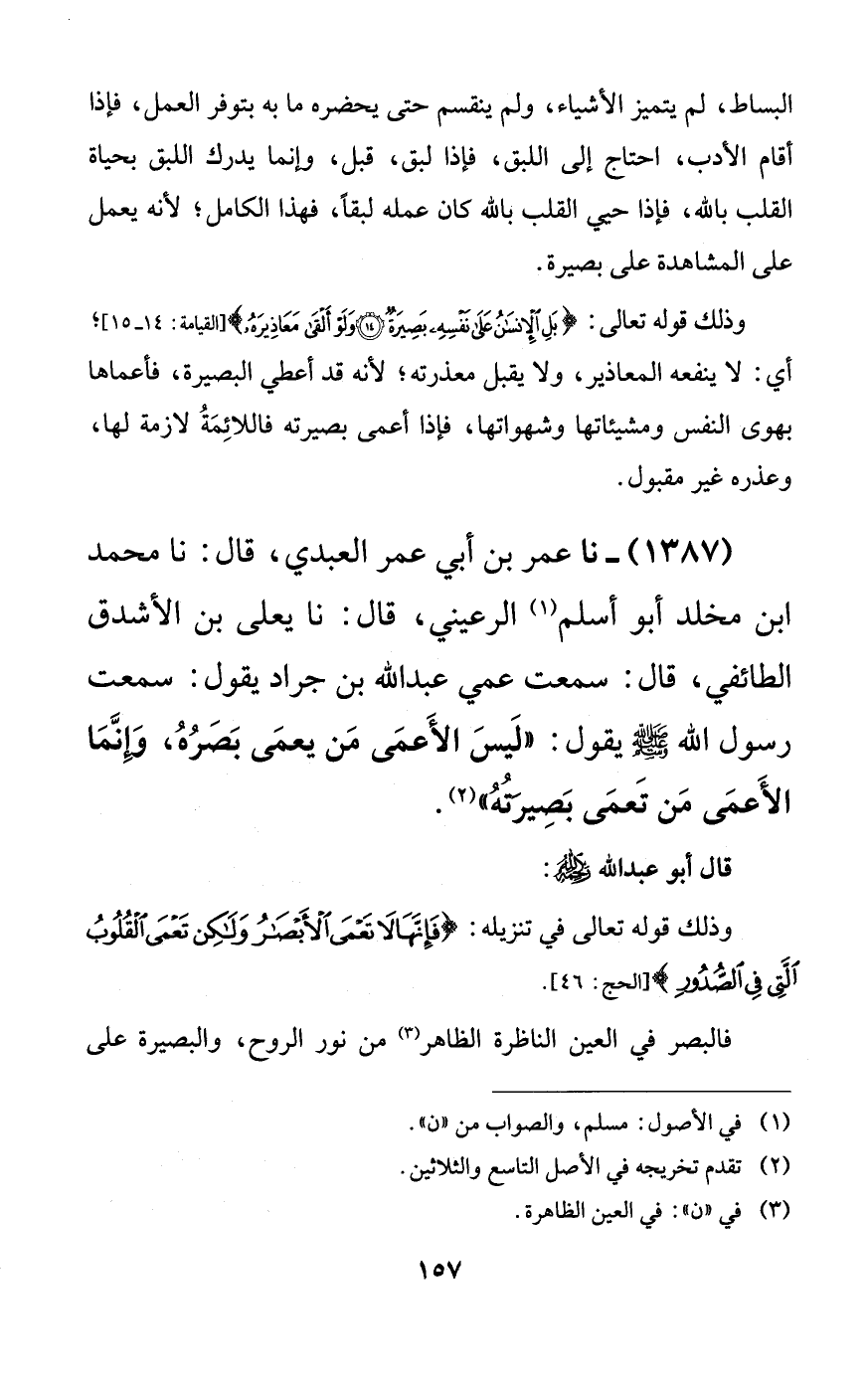 وذلك قوله تعالى في تنزيله: {فإنها لا تعمى الأبصار ولكن تعمى القلوب التي في الصدور}.