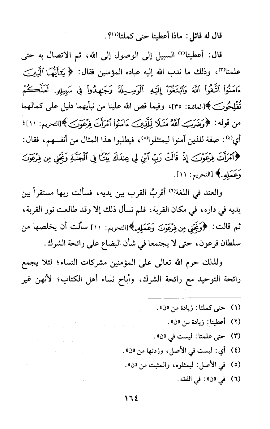 قال: أعطيتا السبيل إلى الوصول إلى الله، ثم الاتصال به حتى علمتا، وذلك ما ندب الله إليه عباده المؤمنين فقال: {يأيها الذين آمنوا اتقوا الله وابتغوا إليه الوسيلة وجاهدوا في سبيله لعلكم تفلحون}، وفيما قص الله علينا من نبأيهما دليل على كمالهما من قوله: {وضرب الله مثلاً للذين آمنوا امرأت فرعون}؛ أي: صفة للذين آمنوا ليمتثلوا، فيطلبوا هذا المثال من أنفسهم، فقال: {امرأت فرعون إذ قالت رب ابن لي عندك بيتاً في الجنة ونجني من فرعون وعمله}.