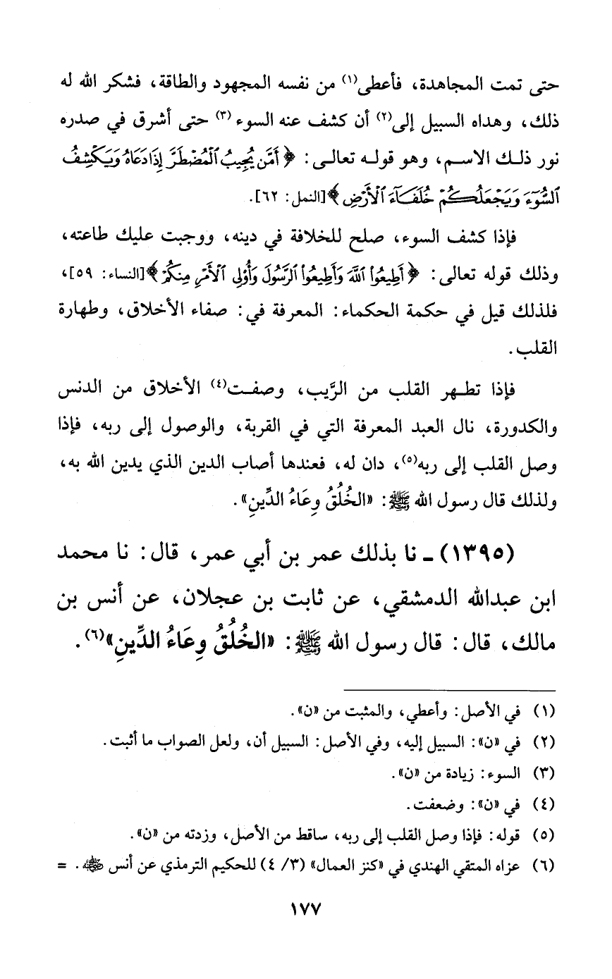 1395 - نا بذلك عمر بن أبي عمر، قال: نا محمد ابن عبد الله الدمشقي، عن ثابت بن عجلان، عن أنس بن مالك، قال: قال رسول الله صلى الله عليه وسلم: ((الخلق وعاء الدين)).
