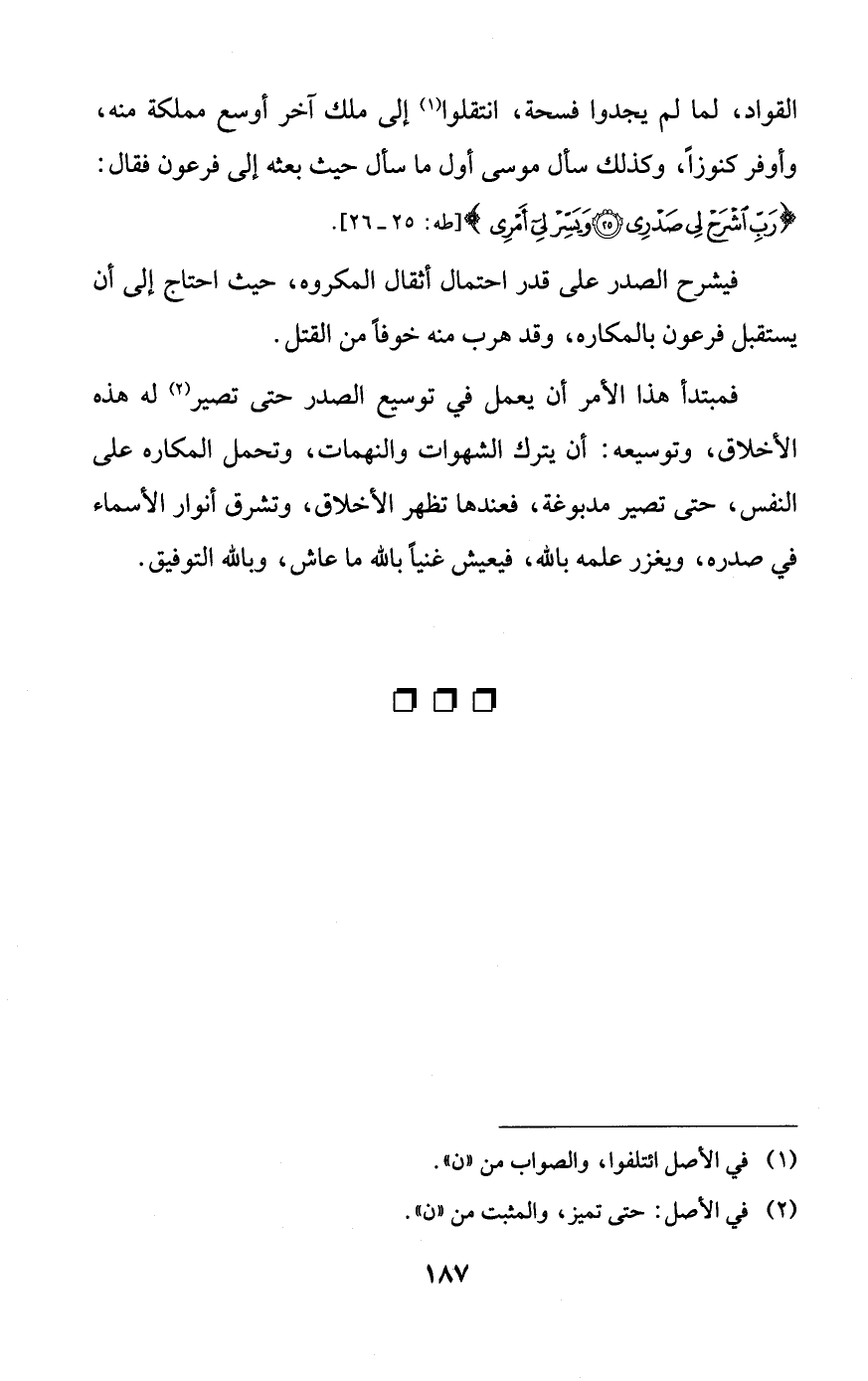 القواد، لما لم يجدوا فسحة، انتقلوا إلى ملك آخر أوسع مملكة منه، وأوفر كنوزاً، وكذلك سأل موسى أول ما سأل حيث بعثه إلى فرعون، فقال: {رب اشرح لي صدري. ويسر لي أمري}.