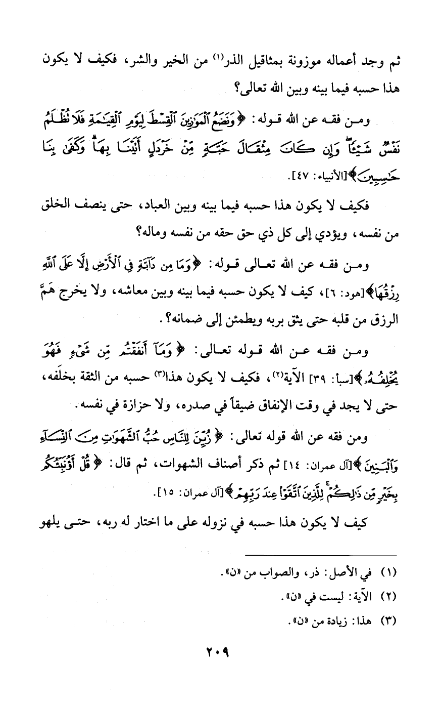 ومن فقه عن الله قوله: {ونضع الموازين القسط ليوم القيامة فلا تظلم نفسٌ شيئاً وإن كان مثقال حبةٍ من خردلٍ أتينا بها وكفى بنا حاسبين}.