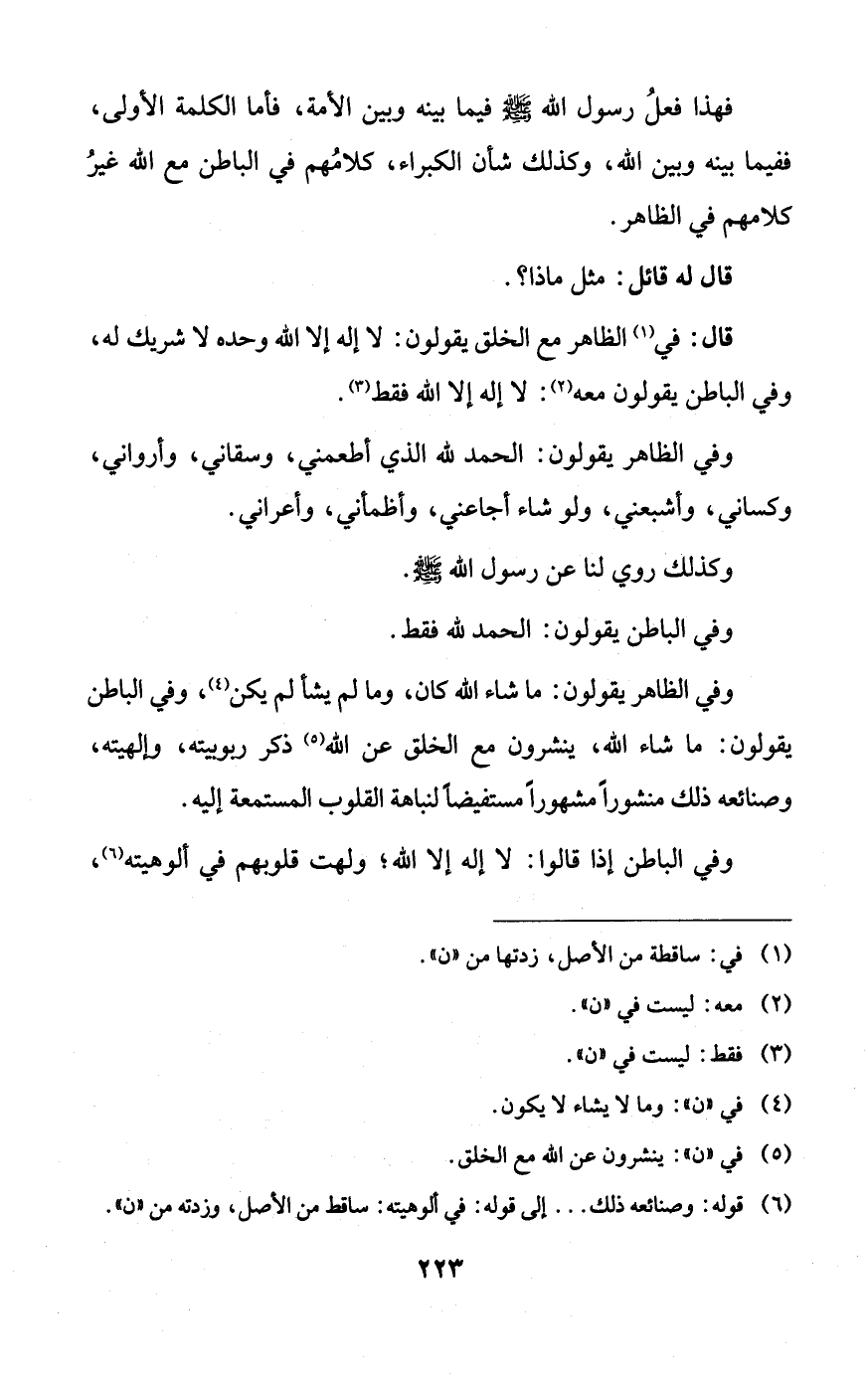قال: في الظاهر مع الخلق يقولون: لا إله إلا الله وحده لا شريك له، وفي الباطن يقولون معه: لا إله إلا الله فقط.