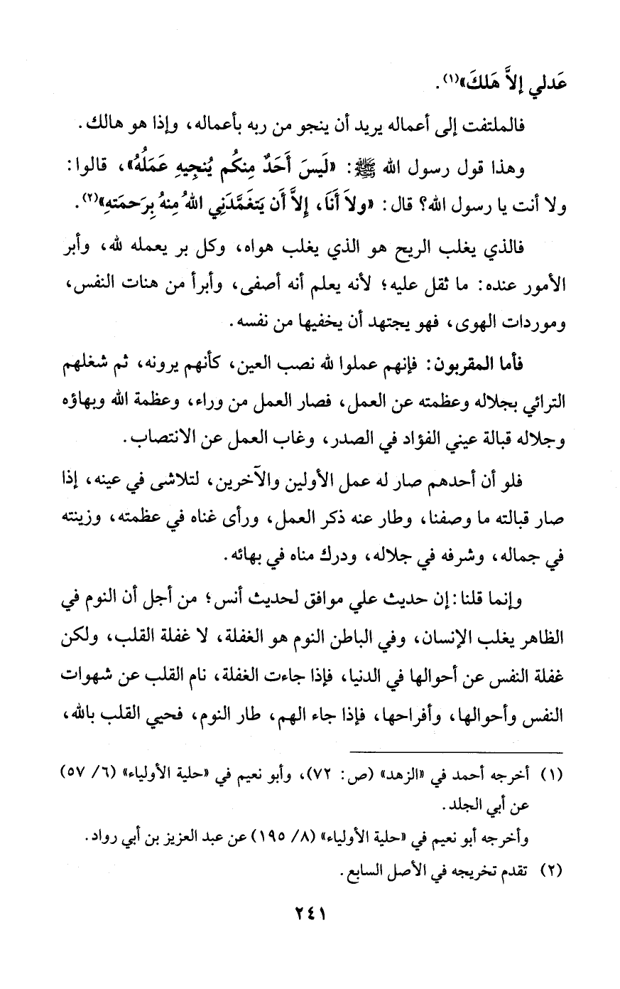 فالملتفت إلى أعماله يريد أن ينجو من ربه بأعماله، وإذا هو هالك.