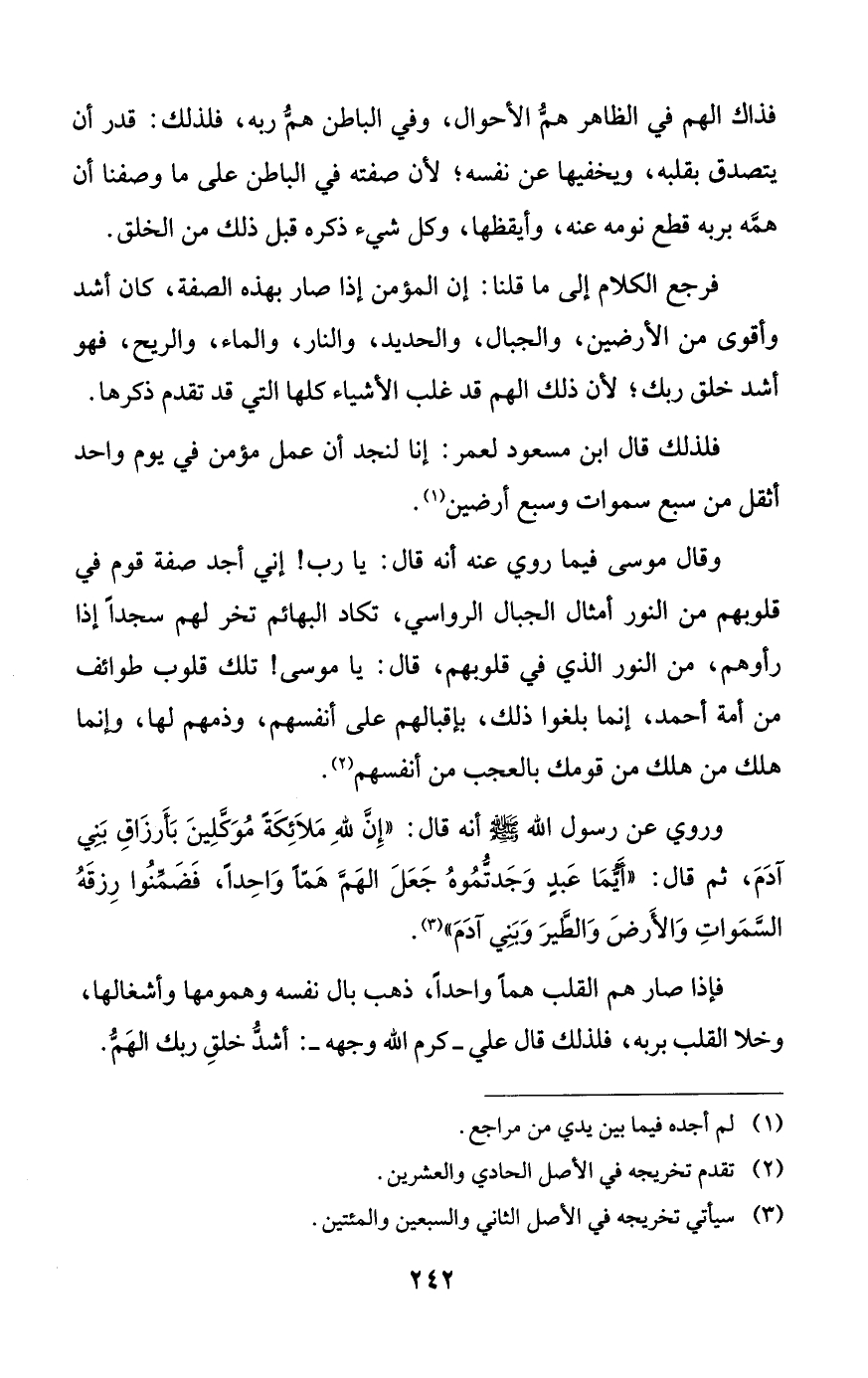 فإذا صار هم القلب هماً واحداً، ذهب بال نفسه وهمومها وأشغالها، وخلا القلب بربه، فلذلك قال علي -كرم الله وجهه-: أشد خلق ربك الهم.