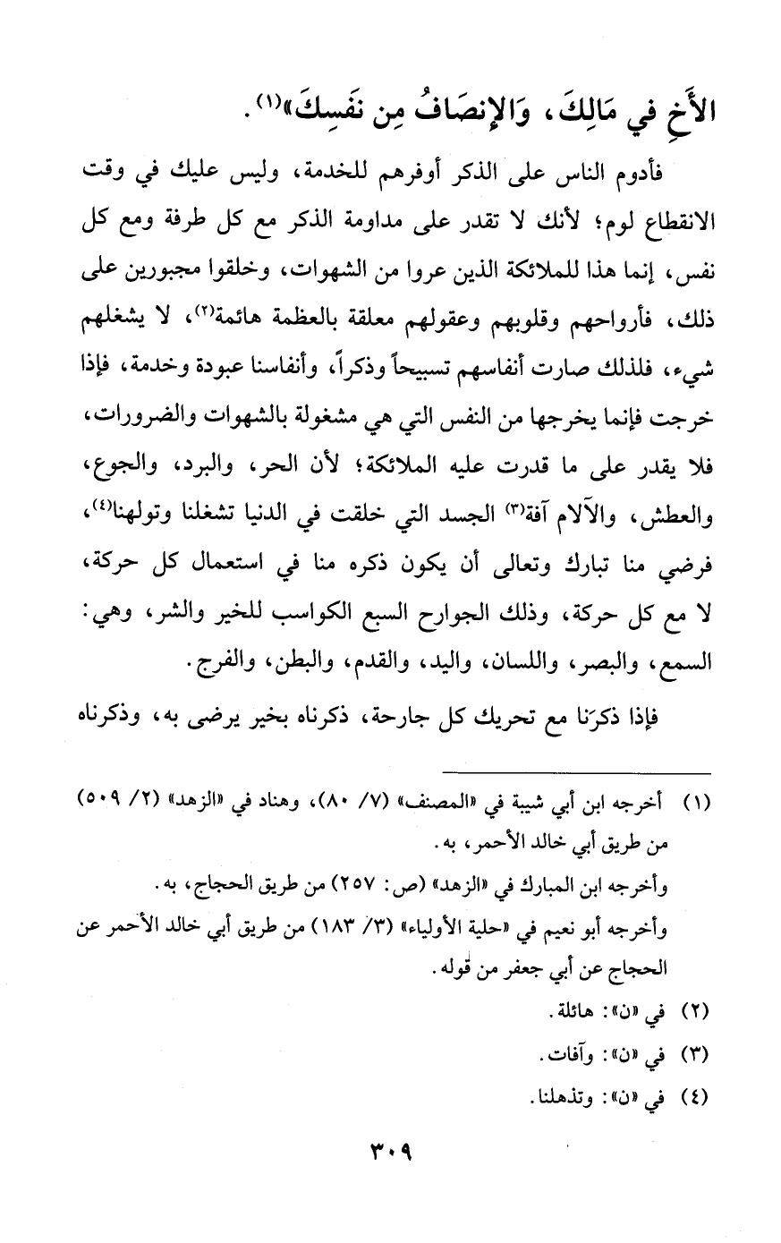 الأخ في مالك، والإنصاف من نفسك)).