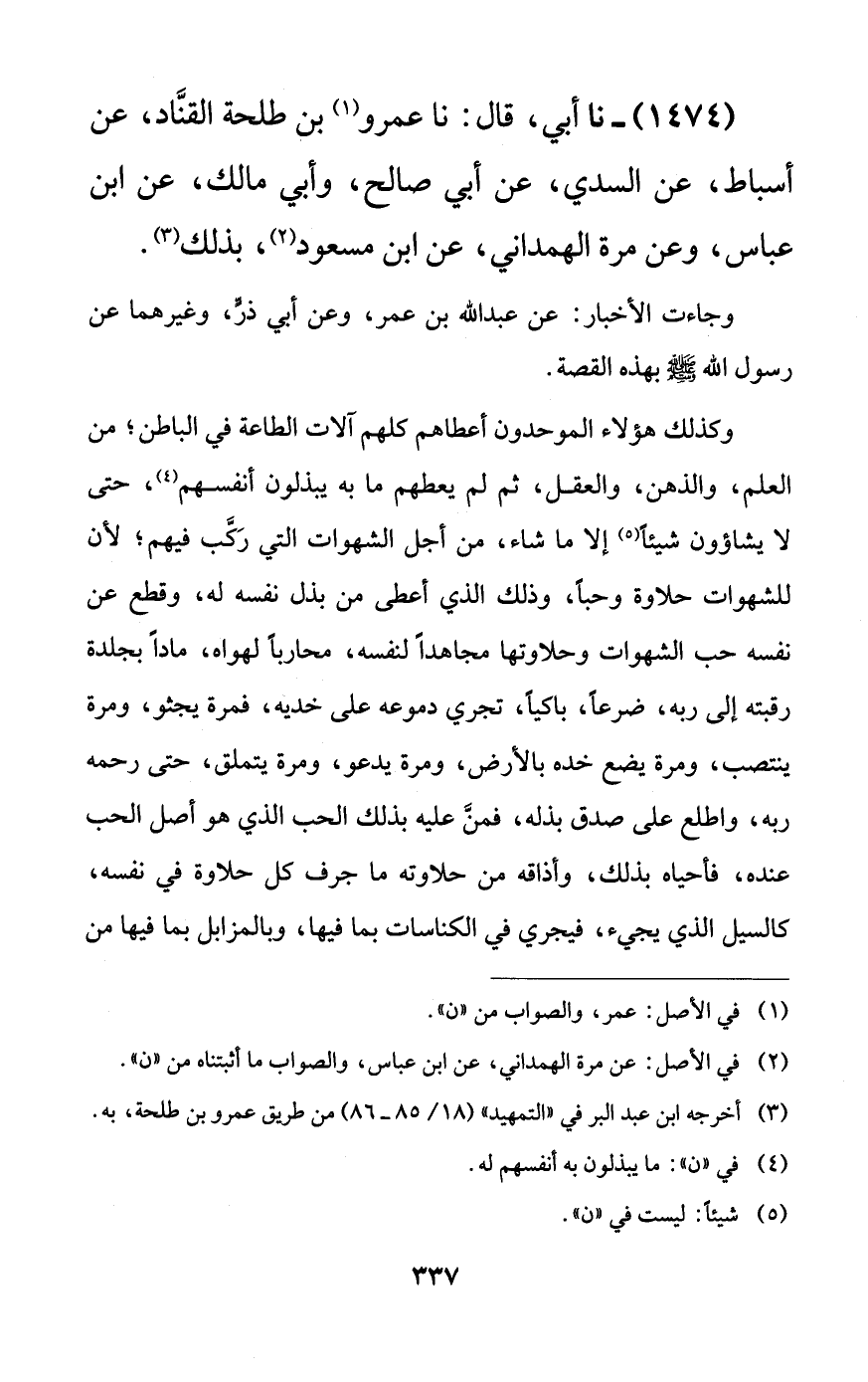 1474 - نا أبي، قال: نا عمرو بن طلحة القناد، عن أسباط، عن السدي، عن أبي صالح، وأبي مالك، عن ابن عباس، وعن مرة الهمداني، عن ابن مسعود، بذلك.