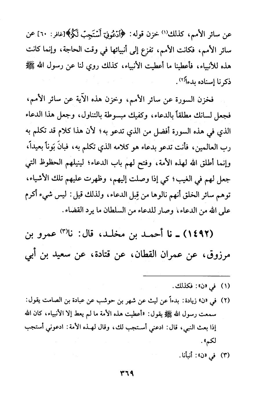 1492 - نا أحمد بن مخلد، قال: نا عمرو بن مرزوق، عن عمران القطان، عن قتادة، عن سعيد بن أبي