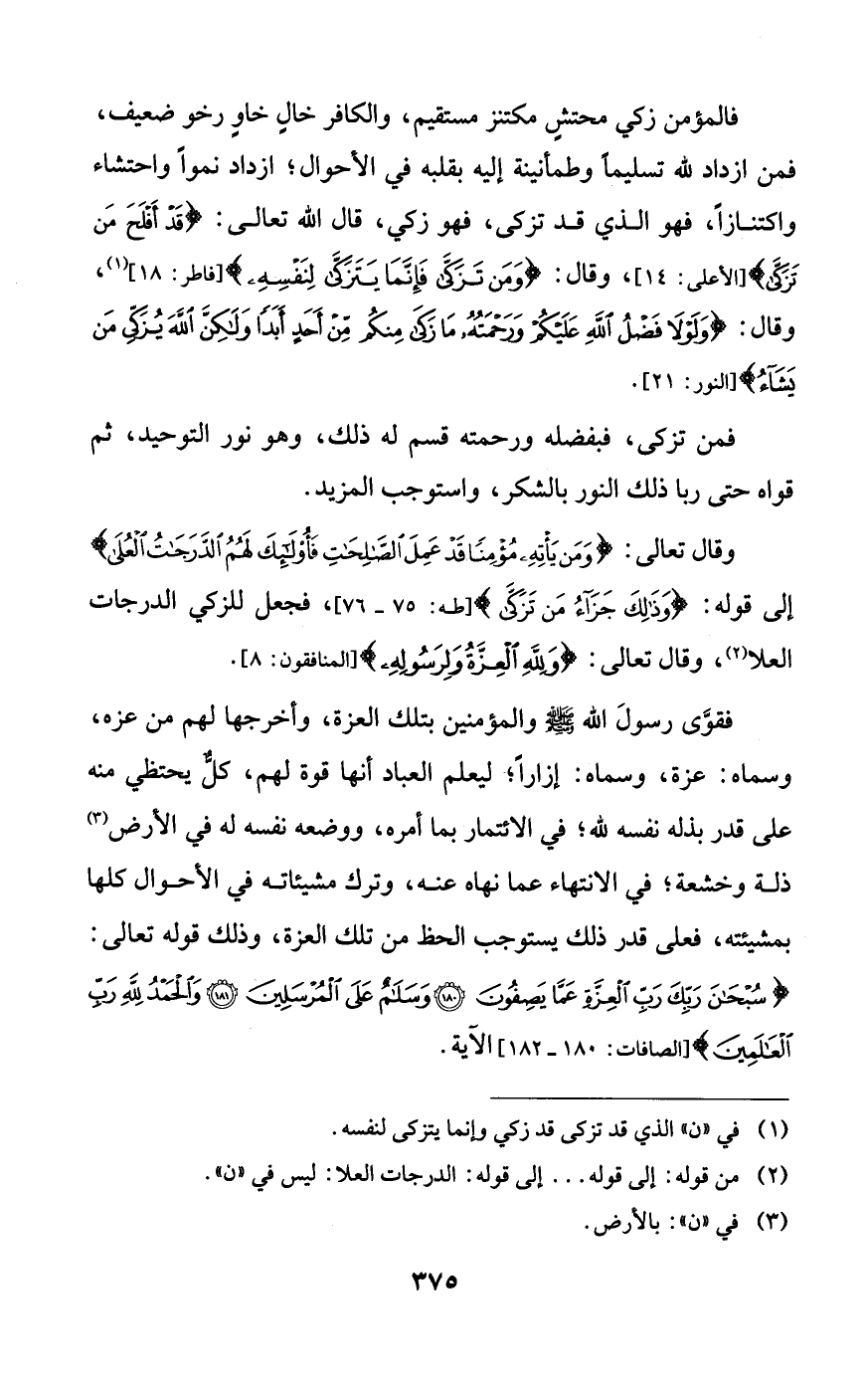وقال تعالى: {ومن يأته مؤمناً قد عمل الصالحات فأولئك لهم الدرجات العلى} إلى قوله: {وذلك جزاء من تزكى}، فجعل للزكي الدرجات العلا، وقال تعالى: {ولله العزة ولرسوله}.