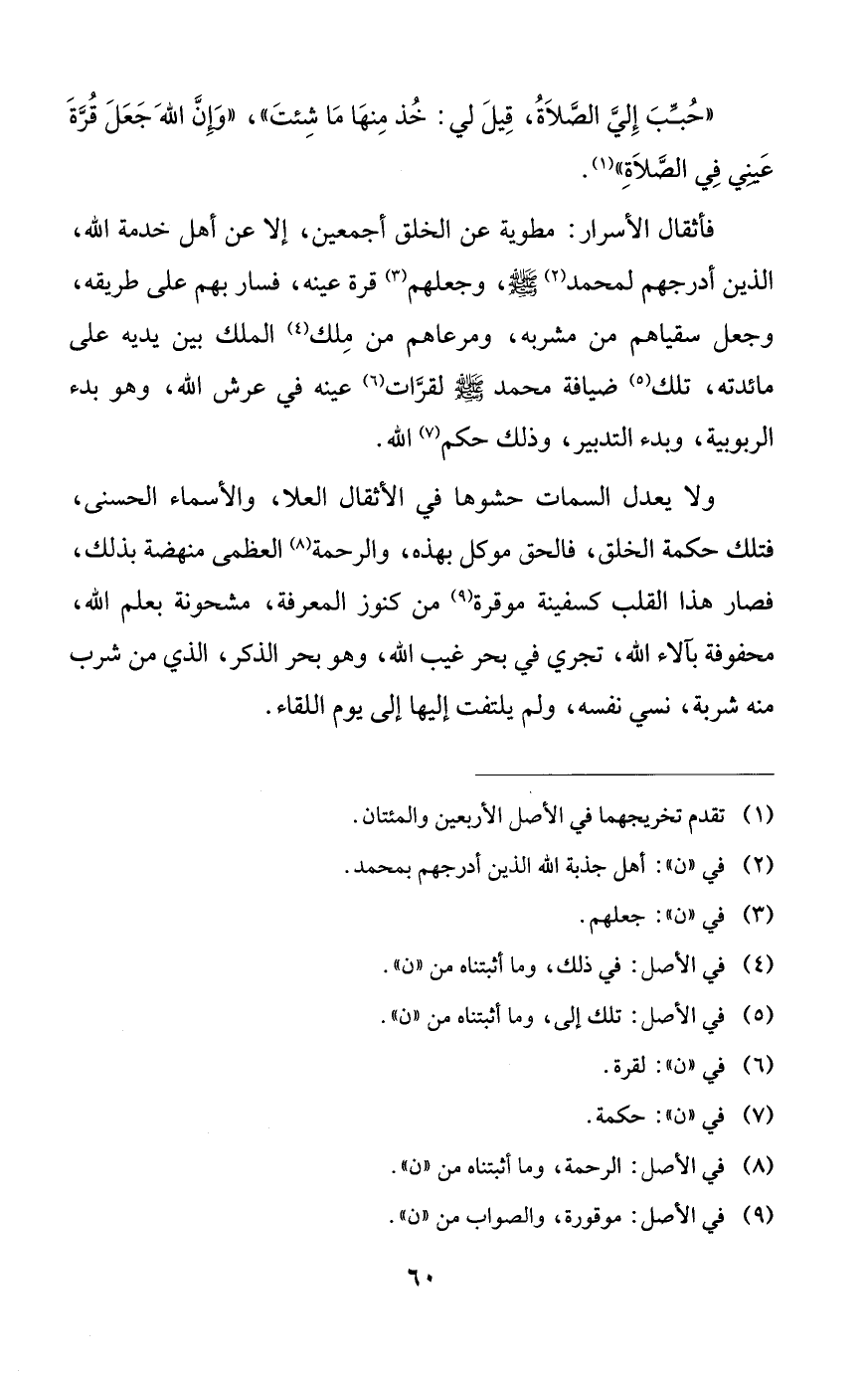 ولا يعدل السمات حشوها في الأثقال العلا، والأسماء الحسنى، فتلك حكمة الخلق، فالحق موكل بهذه، والرحمة العظمى منهضة بذلك، فصار هذا القلب كسفينة موقرة من كنوز المعرفة، مشحونة بعلم الله، محفوفة بآلاء الله، تجري في بحر غيب الله، وهو بحر الذكر، الذي من شرب منه شربة، نسي نفسه، ولم يلتفت إليها إلى يوم اللقاء.