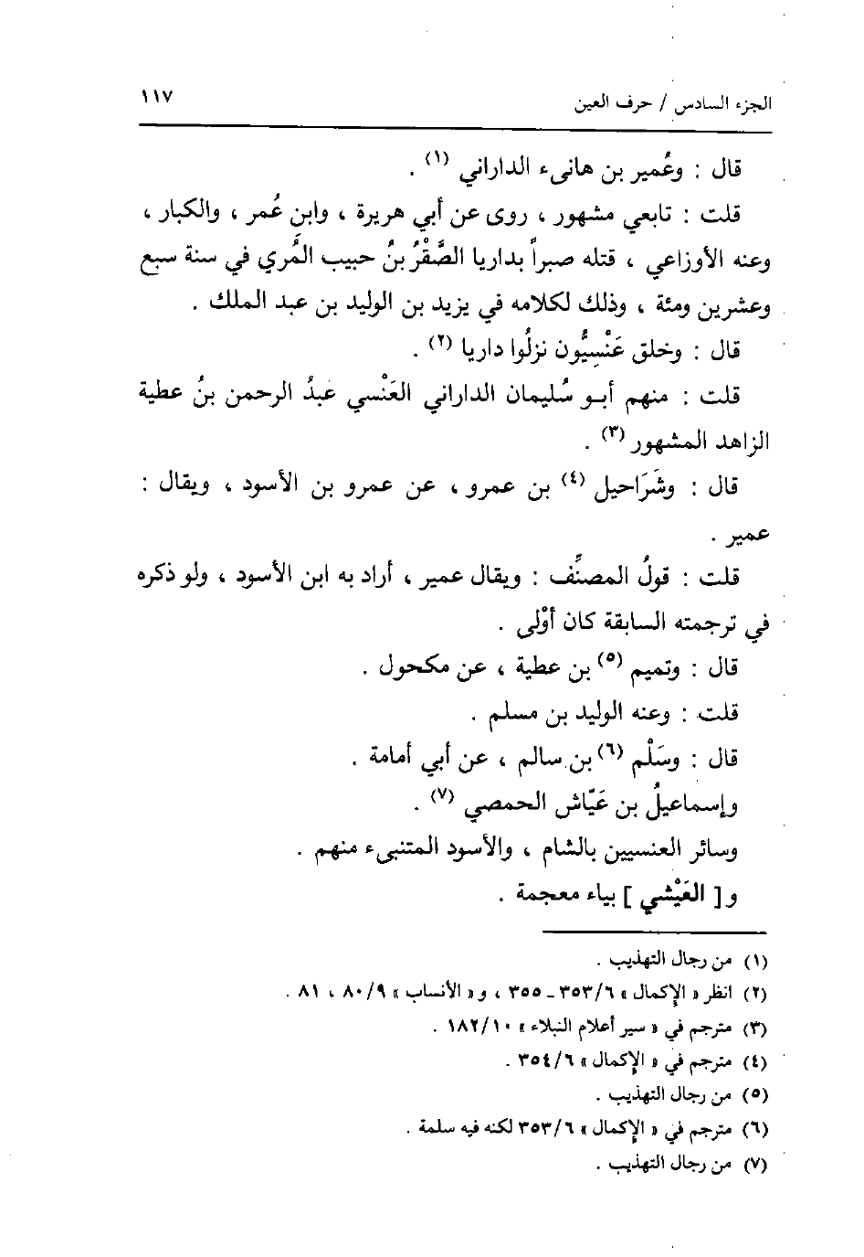 قلت: مِنْهُم أَبُو سُلَيْمَان الدَّارَانِي الْعَنسِي عبد الرَّحْمَن بن عَطِيَّة الزَّاهِد الْمَشْهُور.