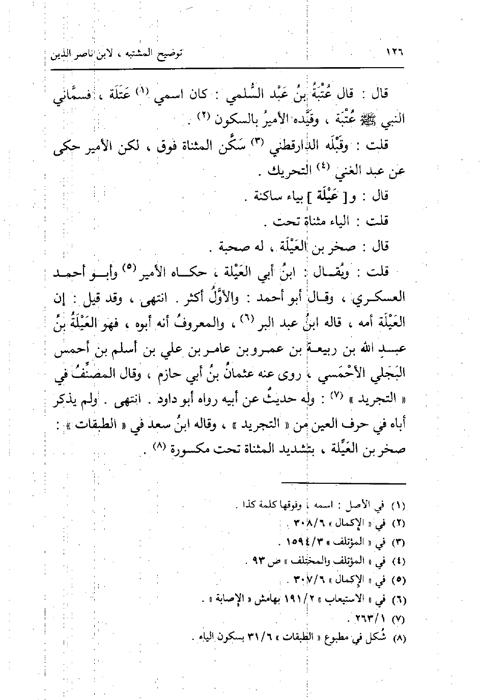 قَالَ: قَالَ عتبَة بن عبد السّلمِيّ: كَانَ اسْمِي عتلة، فسماني النَّبِي صلى الله عَلَيْهِ وَسلم عتبَة، وَقَيده الْأَمِير بِالسُّكُونِ.