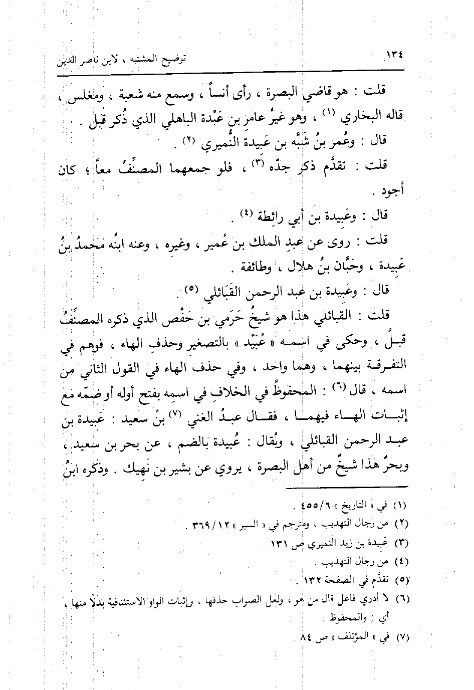 قلت: القبائلي هَذَا هُوَ شيخ حرمي بن حَفْص الَّذِي ذكره المُصَنّف قبل، وَحكى فِي اسْمه " عبيد " بِالتَّصْغِيرِ وَحذف الْهَاء، فَوَهم فِي التَّفْرِقَة بَينهمَا، وهما وَاحِد، وَفِي حذف الْهَاء فِي القَوْل الثَّانِي من اسْمه، قَالَ: الْمَحْفُوظ فِي الْخلاف فِي اسْمه بِفَتْح أَوله أَو ضمه مَعَ إِثْبَات الْهَاء فيهمَا، فَقَالَ عبد الْغَنِيّ بن سعيد: عُبَيْدَة بن عبد الرَّحْمَن القبائلي، وَيُقَال: عُبَيْدَة بِالضَّمِّ، عَن بَحر بن سعيد، وبحر هَذَا شيخ من أهل الْبَصْرَة، يروي عَن بشير بن نهيك. وَذكره ابْن
