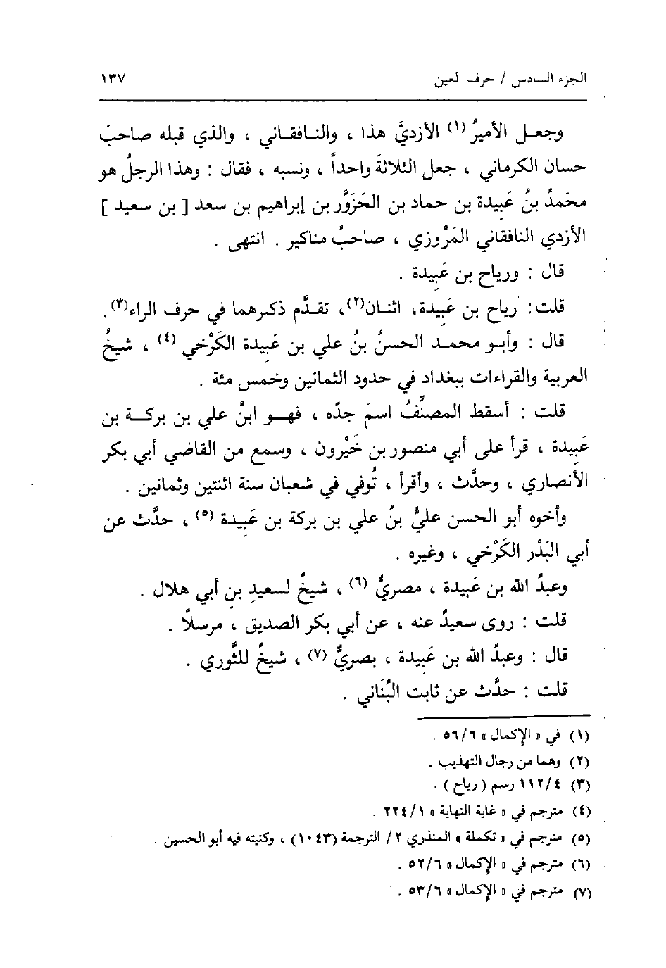 قَالَ: وَأَبُو مُحَمَّد الْحسن بن عَليّ بن عُبَيْدَة الْكَرْخِي، شيخ الْعَرَبيَّة والقراءات بِبَغْدَاد فِي حُدُود الثَّمَانِينَ وَخمْس مئة.