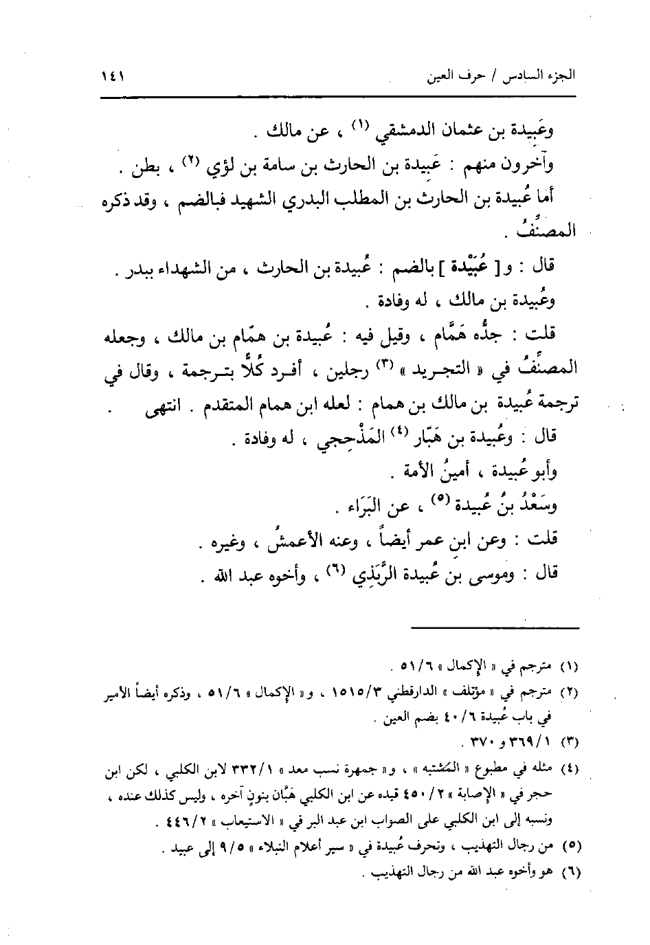 قلت: جده همام، وَقيل فِيهِ: عُبَيْدَة بن همام بن مَالك، وَجعله المُصَنّف فِي " التَّجْرِيد " رجلَيْنِ، أفرد كلا بترجمة، وَقَالَ فِي تَرْجَمَة عُبَيْدَة بن مَالك بن همام: لَعَلَّه ابْن همام الْمُتَقَدّم. انْتهى.