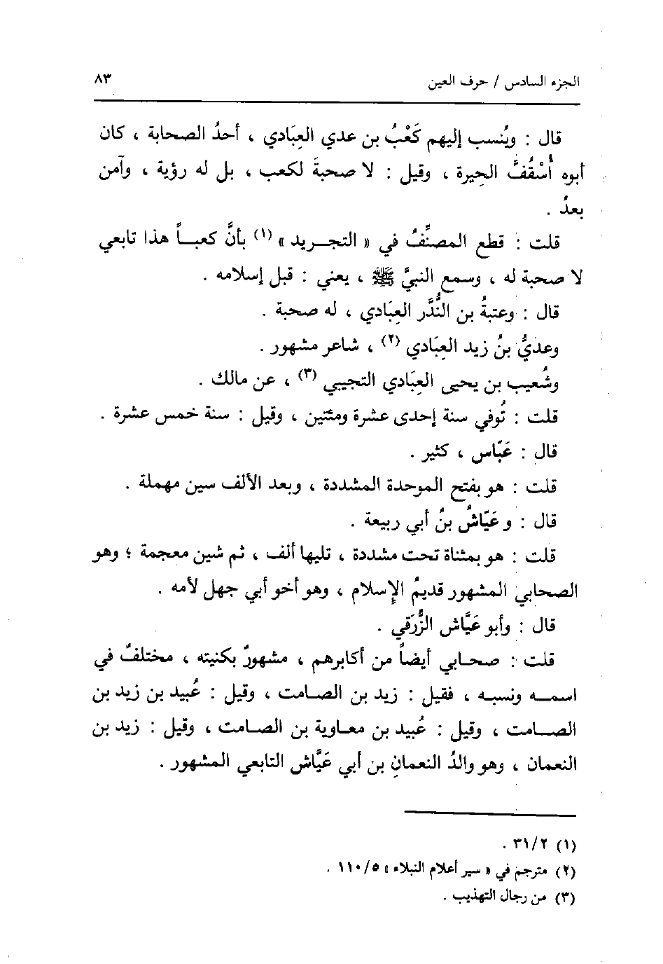 قَالَ: وينسب إِلَيْهِم كَعْب بن عدي الْعَبَّادِيّ، أحد الصَّحَابَة، كَانَ أَبوهُ أَسْقُف الْحيرَة، وَقيل: لَا صُحْبَة لكعب، بل لَهُ رُؤْيَة، وآمن بعد.