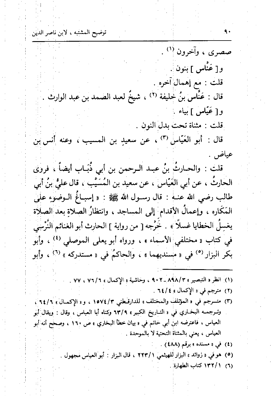 قلت: والْحَارث بن عبد الرَّحْمَن بن أبي ذُبَاب أَيْضا، فروى الْحَارِث، عَن أبي العياس، عَن سعيد بن الْمسيب، قَالَ عَليّ بن أبي طَالب رَضِي الله عَنهُ: قَالَ رَسُول الله صلى الله عَلَيْهِ وَسلم: " إسباغ الْوضُوء على المكاره، وإعمال الْأَقْدَام إِلَى الْمَسَاجِد، وانتظار الصَّلَاة بعد الصَّلَاة يغسل الْخَطَايَا غسلا ". خرجه [من رِوَايَة] الْحَارِث أَبُو الْغَنَائِم النَّرْسِي فِي كتاب " مختلفي الْأَسْمَاء "، وَرَوَاهُ أَبُو يعلى الْموصِلِي، وَأَبُو بكر الْبَزَّار فِي " مسنديهما "، وَالْحَاكِم فِي " مُسْتَدْركه "، وَأَبُو