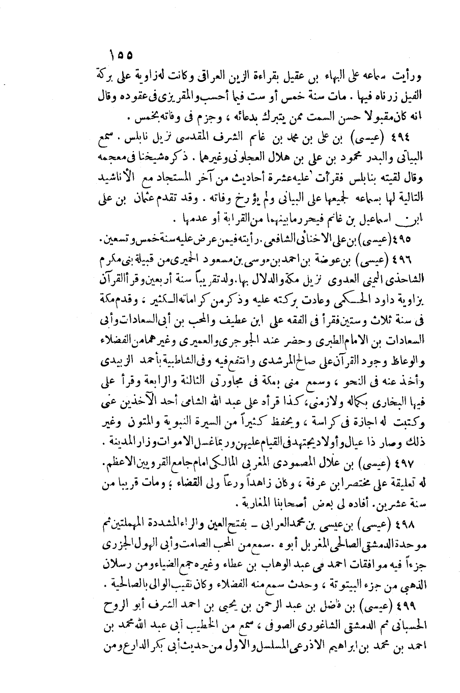 وَرَأَيْت سَمَاعه على الْبَهَاء بن عقيل بِقِرَاءَة الزين الْعِرَاقِيّ وَكَانَت لَهُ زَاوِيَة على بركَة الْفِيل زرناه فِيهَا. مَاتَ سنة خمس أَو سِتّ فِيمَا أَحسب والمقريزي فِي عقوده وَقَالَ أَنه كَانَ مَقْبُولًا حسن السمت مِمَّن يتبرك بدعائه، وَجزم فِي وَفَاته بِخمْس.