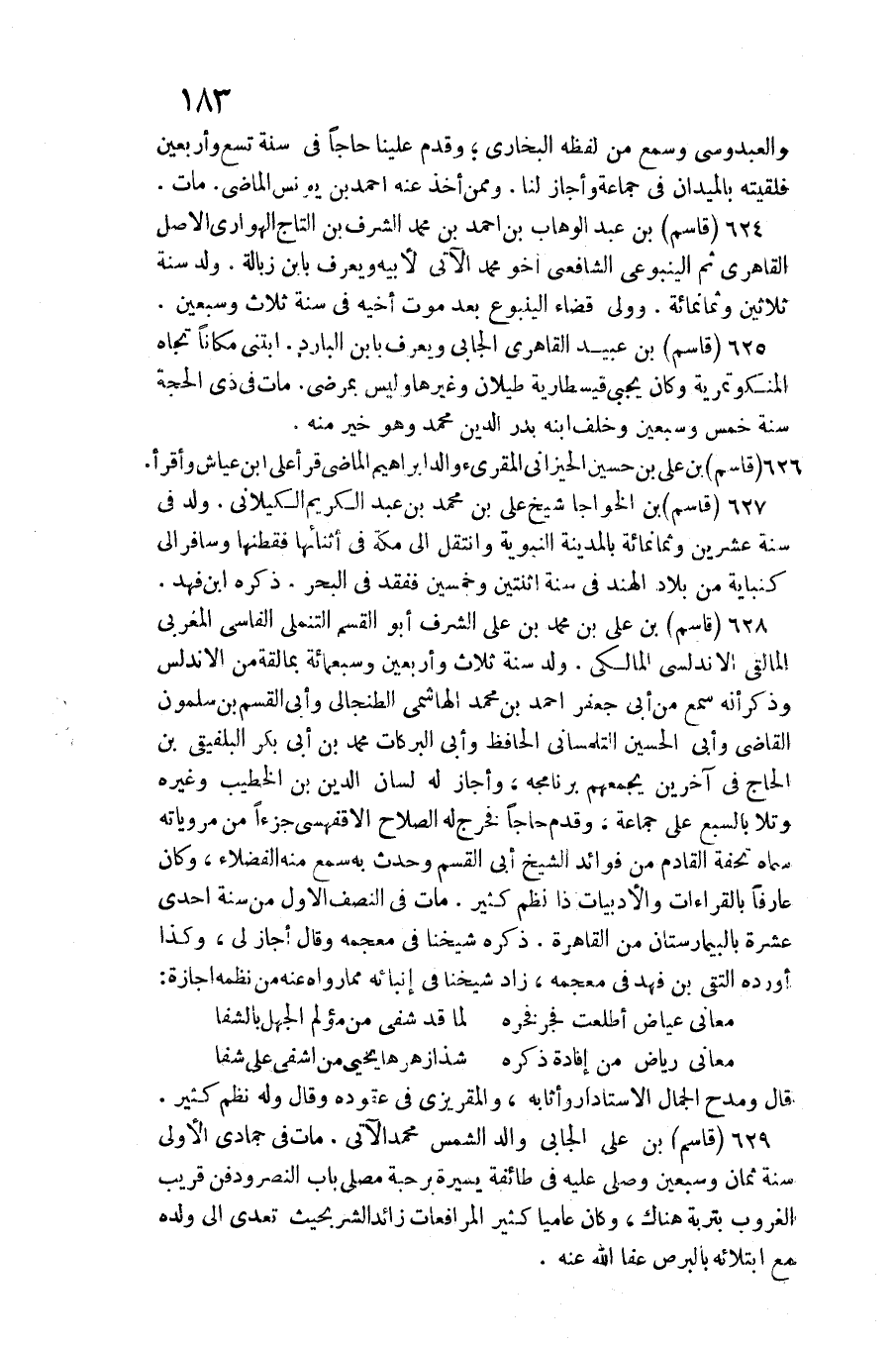 قَاسم بن عبد الْوَهَّاب بن أَحْمد بن مُحَمَّد الشّرف بن التَّاج الهواري الأَصْل القاهري ثمَّ الينبوعي الشَّافِعِي أَخُو مُحَمَّد الْآتِي لِأَبِيهِ وَيعرف بِابْن زبالة. ولد سنة ثَلَاثِينَ وَثَمَانمِائَة. وَولي قَضَاء الينبوع بعد موت أَخِيه فِي سنة ثَلَاث وَسبعين.)