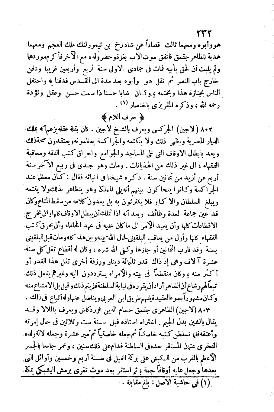 لاجين الظَّاهِرِيّ جقمق حسام الدّين الزردكاش وَيعرف باللالا وَقد يُقَال بالشين بدل الْجِيم.