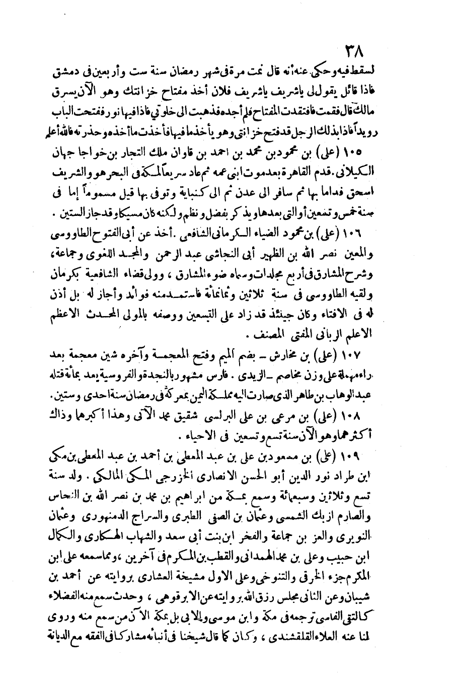لسقط فِيهِ وَحكى عَنهُ أَنه قَالَ: نمت مرّة فِي شهر رَمَضَان سنة سِتّ وَأَرْبَعين فِي دمشق فَإِذا قَائِل يَقُول لي: يَا شرِيف يَا شرِيف فلَان أَخذ مِفْتَاح خزانتك وَهُوَ الْآن يسرق مَالك قَالَ: فَقُمْت فافتقدت الْمِفْتَاح فَلم أَجِدهُ فَذَهَبت إِلَى خلوتي فَإِذا فِيهَا نور ففتحت الْبَاب رويدا فَإِذا بذلك الرجل قد فتح خزانتي وَهُوَ يَأْخُذ مَا فِيهَا فَأخذت مَا أَخذه وحذرته فَالله أعلم.