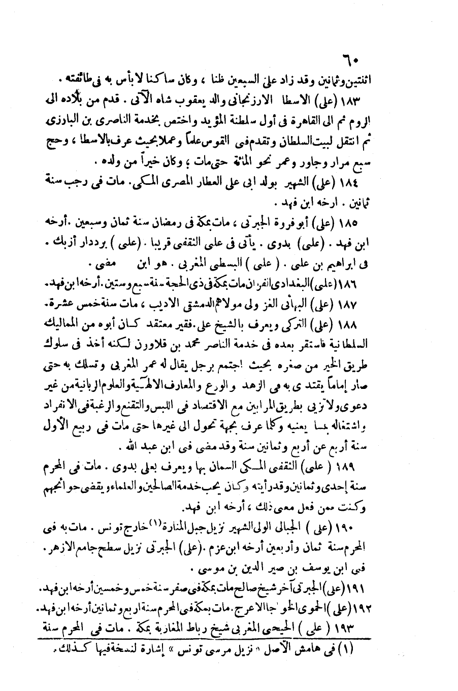 على أَبُو فَرْوَة الجبرتي، مَاتَ بِمَكَّة فِي رَمَضَان سنة ثَمَان وَسبعين. أرخه ابْن فَهد. عَليّ بدوي. يَأْتِي فِي عَليّ الثَّقَفِيّ قَرِيبا. عَليّ برددار أزبك. فِي إِبْرَاهِيم بن عَليّ. عَليّ البسطي المغربي. هُوَ ابْن مضى.