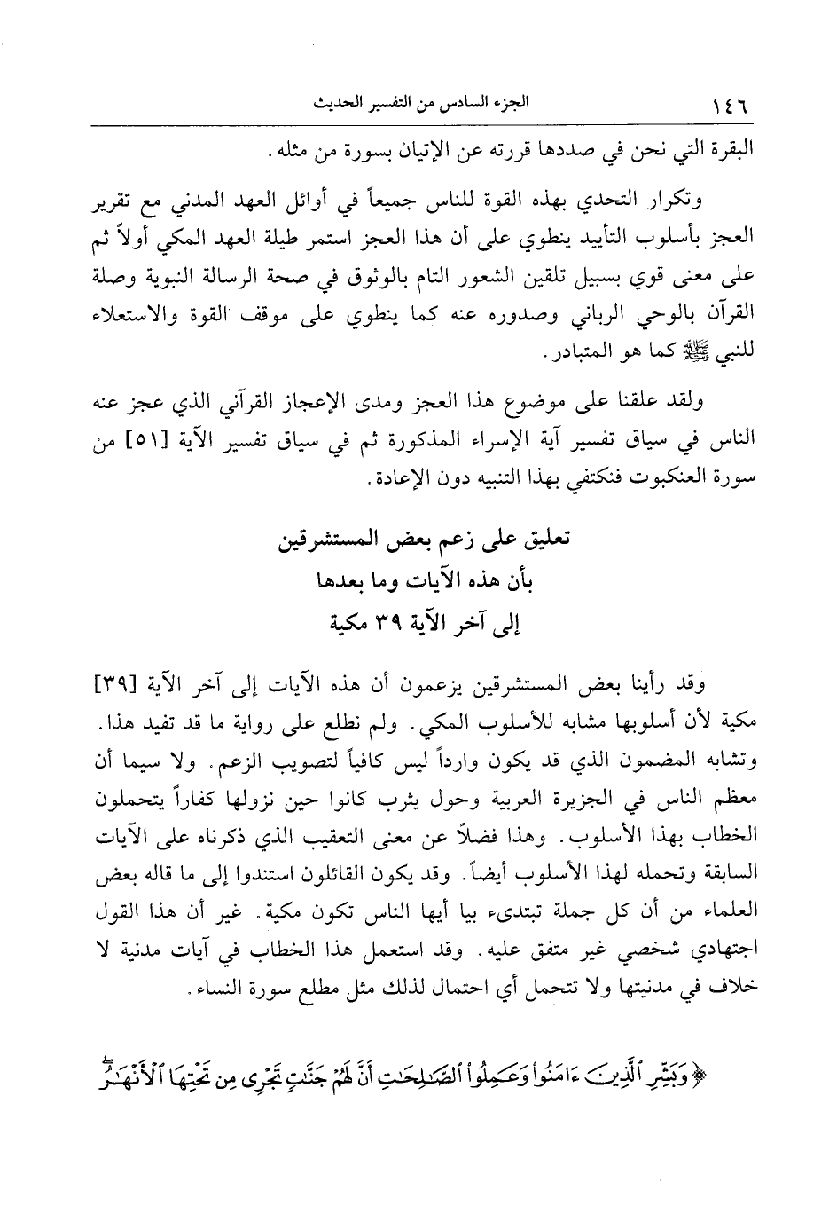 تعليق على زعم بعض المستشرقين بأن هذه الآيات وما بعدها إلى آخر الآية 39 مكية