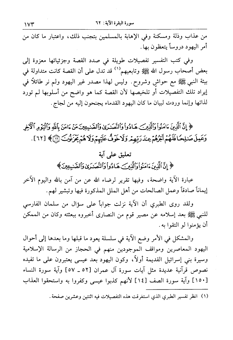 . تعليق على آية إِنَّ الَّذِينَ آمَنُوا وَالَّذِينَ هادُوا وَالنَّصارى وَالصَّابِئِينَ
