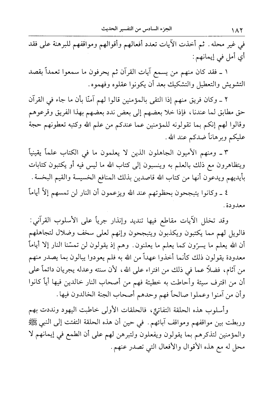 وأسلوب هذه الحلقة التفاتيّ، فالحلقات الأولى خاطبت اليهود ونددت بهم وربطت بين مواقفهم ومواقف آبائهم. في حين أن هذه الحلقة التفتت إلى النبي صلّى الله عليه وسلّم والمؤمنين لتذكرهم بما يقولون ويفعلون ولتبرهن لهم على أن الطمع في إيمانهم لا محل له مع هذه الأقوال والأفعال التي تصدر عنهم.