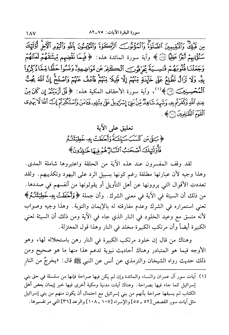 تعليق على الآية بَلى مَنْ كَسَبَ سَيِّئَةً وَأَحاطَتْ بِهِ خَطِيئَتُهُ فَأُولئِكَ أَصْحابُ النَّارِ هُمْ فِيها خالِدُونَ