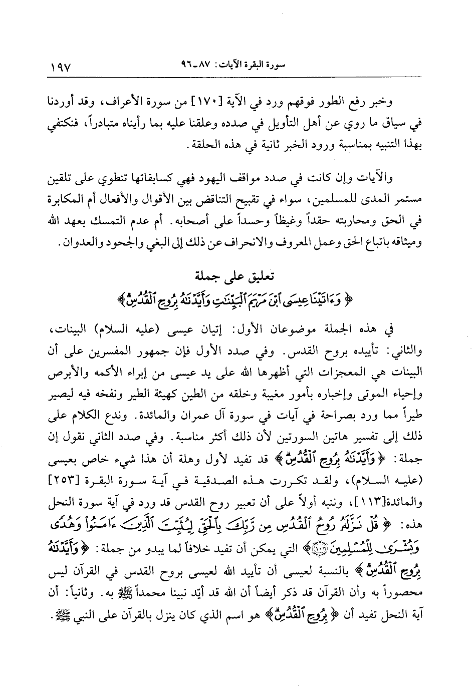 تعليق على جملة وَآتَيْنا عِيسَى ابْنَ مَرْيَمَ الْبَيِّناتِ وَأَيَّدْناهُ بِرُوحِ الْقُدُسِ