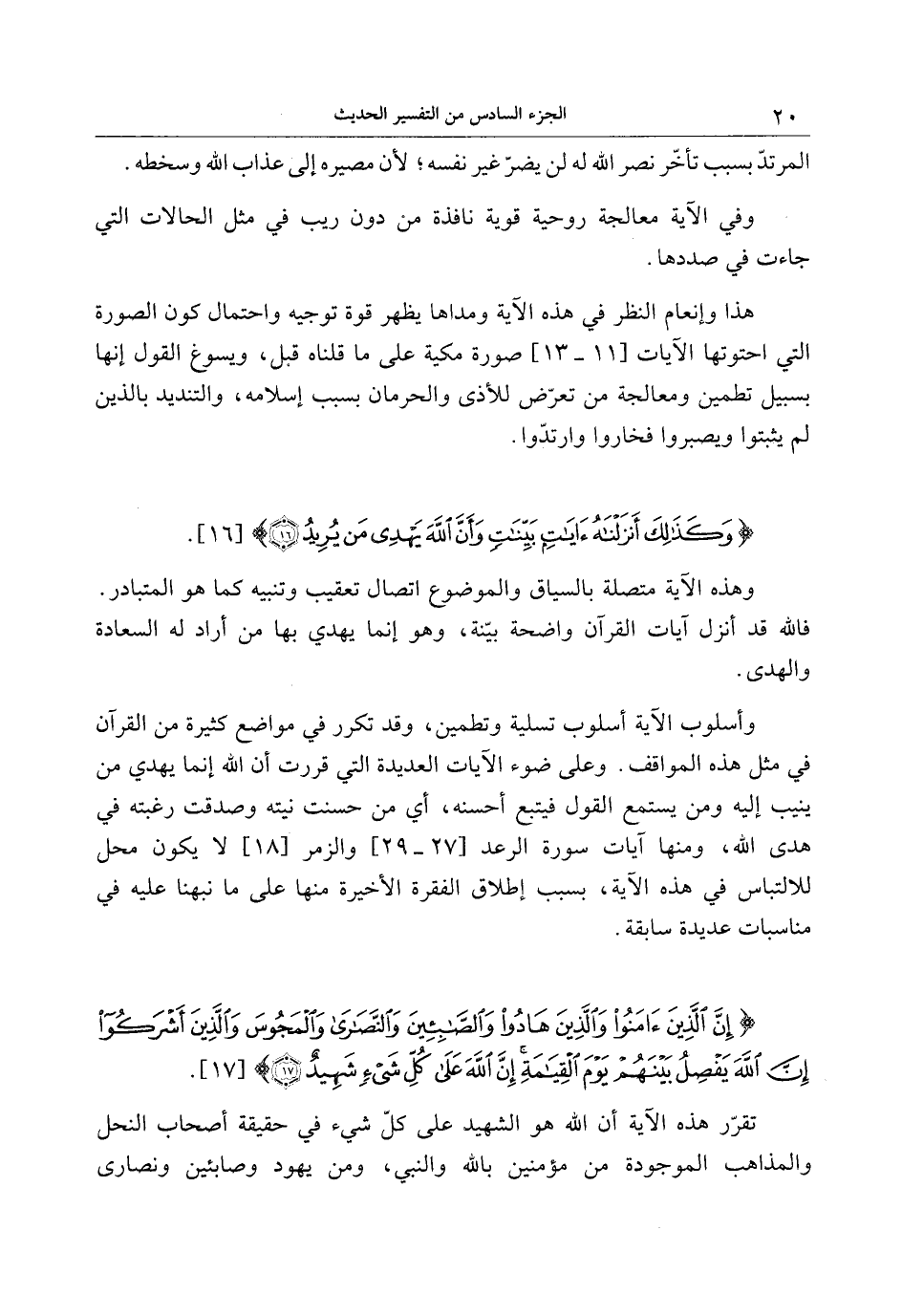 إِنَّ الَّذِينَ آمَنُوا وَالَّذِينَ هادُوا وَالصَّابِئِينَ وَالنَّصارى وَالْمَجُوسَ وَالَّذِينَ أَشْرَكُوا إِنَّ اللَّهَ يَفْصِلُ بَيْنَهُمْ يَوْمَ الْقِيامَةِ إِنَّ اللَّهَ عَلى كُلِّ شَيْءٍ شَهِيدٌ (17)