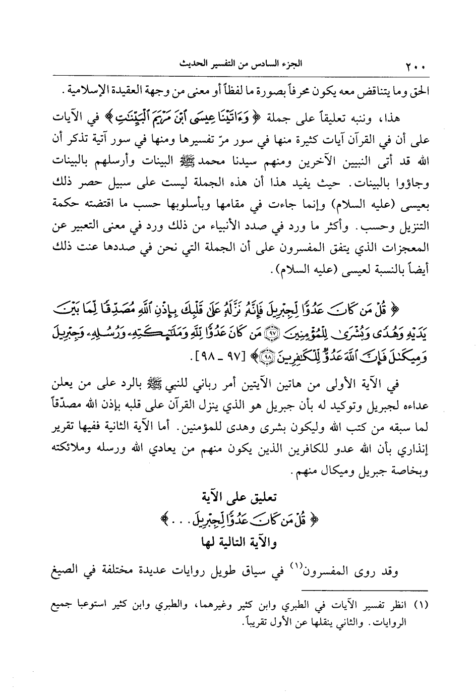 تعليق على الآية قُلْ مَنْ كانَ عَدُوًّا لِجِبْرِيلَ ... والآية التالية لها