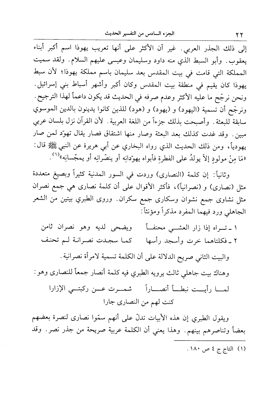 ويقول الطبري إن هذه الأبيات تدلّ على أنهم سمّوا نصارى لنصرة بعضهم بعضا وتناصرهم بينهم. وهذا يعني أن الكلمة عربية صريحة من جذر نصر. وقد