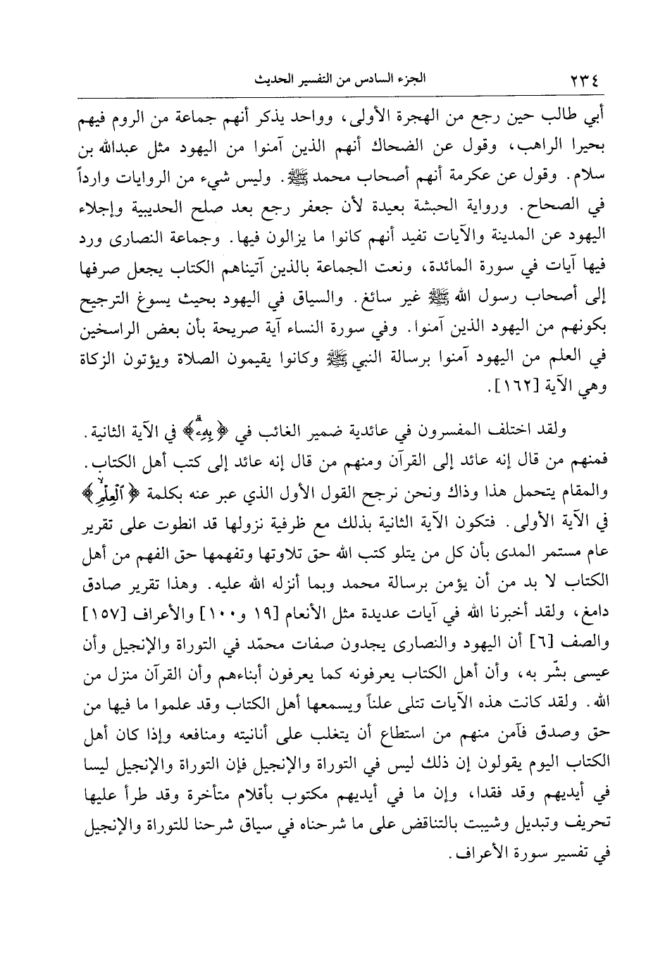 أبي طالب حين رجع من الهجرة الأولى، وواحد يذكر أنهم جماعة من الروم فيهم بحيرا الراهب، وقول عن الضحاك أنهم الذين آمنوا من اليهود مثل عبد الله بن سلام. وقول عن عكرمة أنهم أصحاب محمد صلّى الله عليه وسلّم. وليس شيء من الروايات واردا في الصحاح. ورواية الحبشة بعيدة لأن جعفر رجع بعد صلح الحديبية وإجلاء اليهود عن المدينة والآيات تفيد أنهم كانوا ما يزالون فيها. وجماعة النصارى ورد فيها آيات في سورة المائدة، ونعت الجماعة بالذين آتيناهم الكتاب يجعل صرفها إلى أصحاب رسول الله صلّى الله عليه وسلّم غير سائغ. والسياق في اليهود بحيث يسوغ الترجيح بكونهم من اليهود الذين آمنوا. وفي سورة النساء آية صريحة بأن بعض الراسخين في العلم من اليهود آمنوا برسالة النبي صلّى الله عليه وسلّم وكانوا يقيمون الصلاة ويؤتون الزكاة وهي الآية [162] .